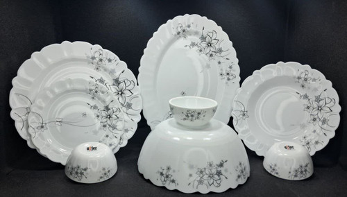 شامل : ۶ عدد پلو .۶ عدد خورشت.۶ عدد میوه.۶ عدد ماست .۱ عدد دیس. ۱ عدد کاسه سالاد