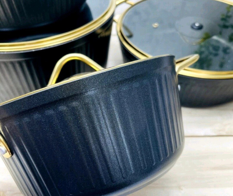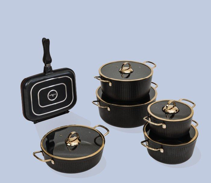 سرویس قابلمه یونیک فلورانس مشکی 12 پارچه درب فلت UN-8422 و 8420