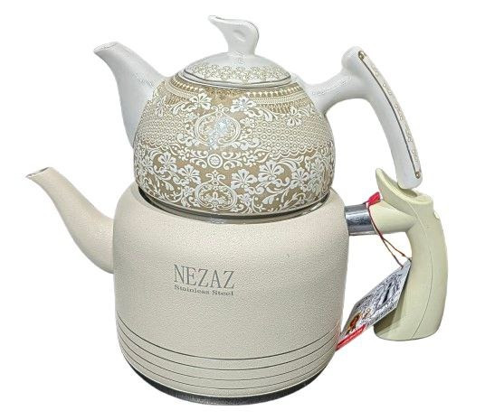 کتری قوری لوله دار نزاز 2.5 لیتری کد 2406 رنگ کرم