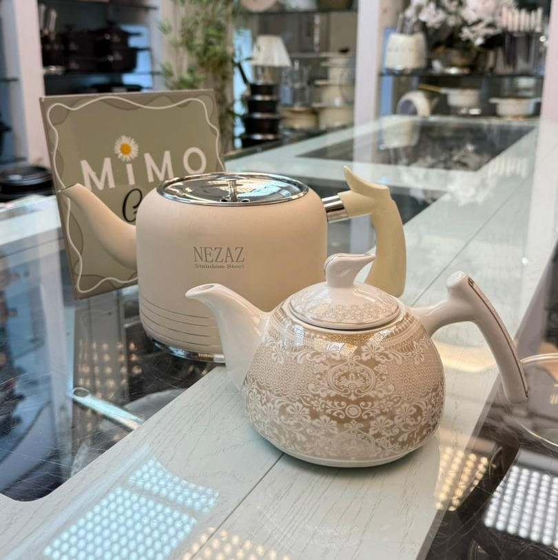 کتری قوری لوله دار نزاز 2.5 لیتری کد 2406 رنگ کرم