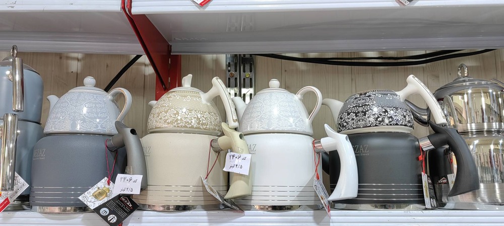 کتری قوری لوله دار نزاز 2.5 لیتری کد 2406 رنگ کرم