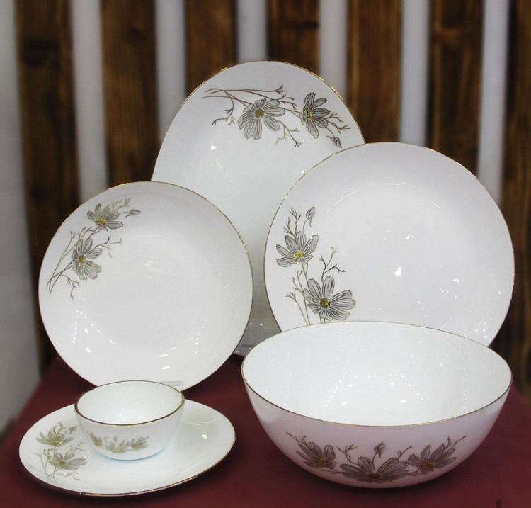 سرویس غذاخوری آرکوپال 26 پارچه گرد ژالین لب طلا طوسی