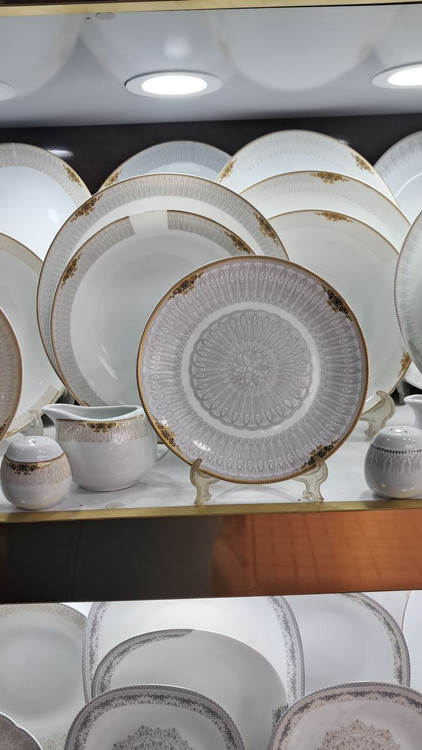 سرویس غذا خوری 26 پارچه طرح چینی زمینه طوسی طلا
