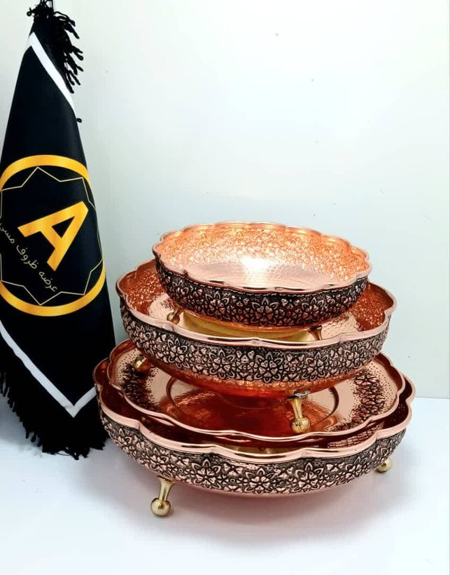 ✳️ست پذیرایی مسی سه پایه رز زنجان تمام قرمز پوشش نانو