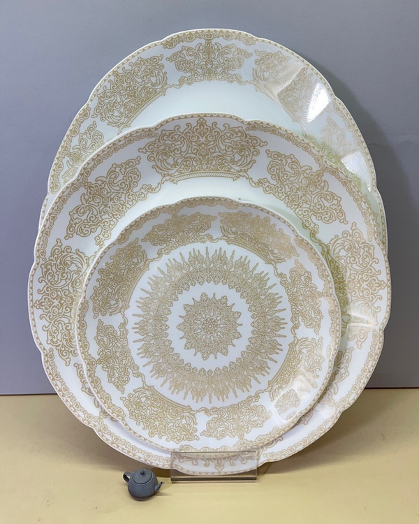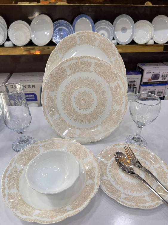 طرح عروس طلایی قالب نیلوفری برند مقصود 26 پارچه این ظروف آرکوپال از کیفیت ساخت بالایی برخورداره و طراحی فوقع العاده زیبایی دارد که در نگاه اول متوجه آن میشوید.