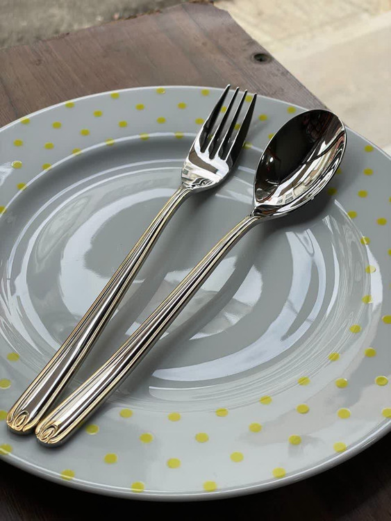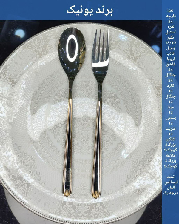 سرویس قاشق 120 پارچه دهانه اروپایی استیل طلا