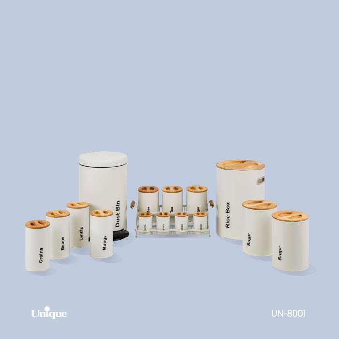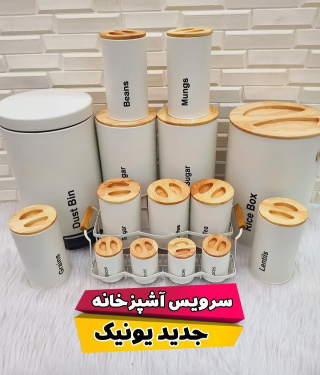 رنگ بدنه این سرویس ثابت است و در اثر استفاده مداوم و شستشو از بین نمی رود. این سرویس شامل سطل برنج، سطل زباله، بانکه قند و شکر، بانکه حبوبات پاسماوری و بانکه ادویه می باشد. این سرویس یک سرویس آشپزخانه کامل جهت نظم دهی به آشپزخانه می باشد. سطل زباله این سرویس آشپزخانه به صورت پدالی است و یک سطل پلاستیکی درب دار داخل آن است که قابلیت شستشو نیز دارد. بر روی بدنه این سرویس آشپزخانه اقلامی که در آن قابلیت نگهداری دارند مثل برنج، حبوبات، شکر، قهوه و چای نوشته شده است.