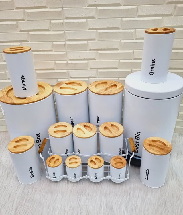رنگ بدنه این سرویس ثابت است و در اثر استفاده مداوم و شستشو از بین نمی رود. این سرویس شامل سطل برنج، سطل زباله، بانکه قند و شکر، بانکه حبوبات پاسماوری و بانکه ادویه می باشد. این سرویس یک سرویس آشپزخانه کامل جهت نظم دهی به آشپزخانه می باشد. سطل زباله این سرویس آشپزخانه به صورت پدالی است و یک سطل پلاستیکی درب دار داخل آن است که قابلیت شستشو نیز دارد. بر روی بدنه این سرویس آشپزخانه اقلامی که در آن قابلیت نگهداری دارند مثل برنج، حبوبات، شکر، قهوه و چای نوشته