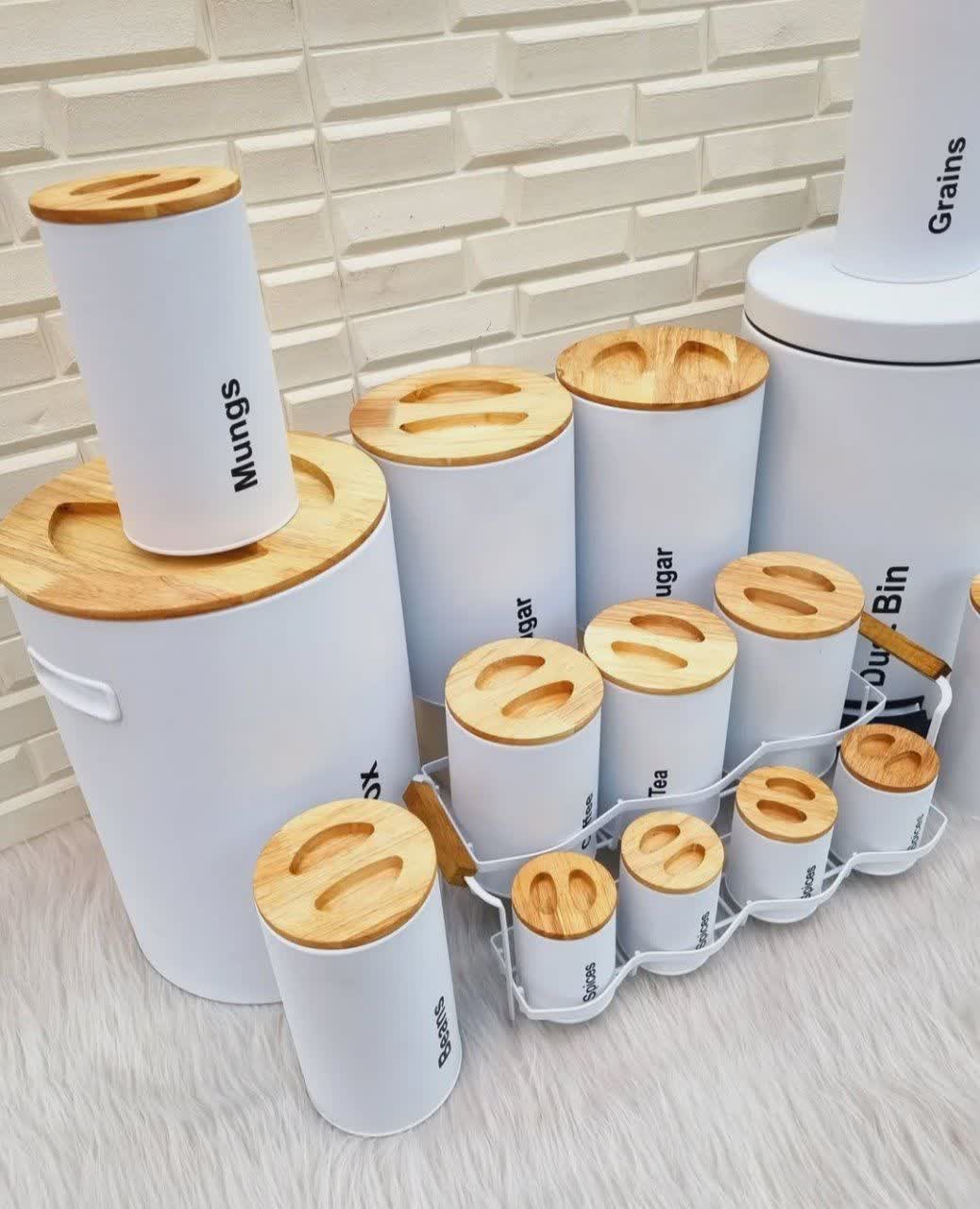 رنگ بدنه این سرویس ثابت است و در اثر استفاده مداوم و شستشو از بین نمی رود. این سرویس شامل سطل برنج، سطل زباله، بانکه قند و شکر، بانکه حبوبات پاسماوری و بانکه ادویه می باشد. این سرویس یک سرویس آشپزخانه کامل جهت نظم دهی به آشپزخانه می باشد. سطل زباله این سرویس آشپزخانه به صورت پدالی است و یک سطل پلاستیکی درب دار داخل آن است که قابلیت شستشو نیز دارد. بر روی بدنه این سرویس آشپزخانه اقلامی که در آن قابلیت نگهداری دارند مثل برنج، حبوبات، شکر، قهوه و چای نوشته