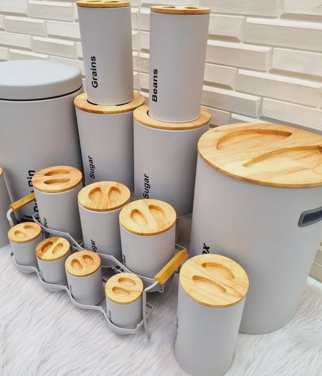 رنگ بدنه این سرویس ثابت است و در اثر استفاده مداوم و شستشو از بین نمی رود. این سرویس شامل سطل برنج، سطل زباله، بانکه قند و شکر، بانکه حبوبات پاسماوری و بانکه ادویه می باشد. این سرویس یک سرویس آشپزخانه کامل جهت نظم دهی به آشپزخانه می باشد. سطل زباله این سرویس آشپزخانه به صورت پدالی است و یک سطل پلاستیکی درب دار داخل آن است که قابلیت شستشو نیز دارد. بر روی بدنه این سرویس آشپزخانه اقلامی که در آن قابلیت نگهداری دارند مثل برنج، حبوبات، شکر، قهوه و چای نوشته