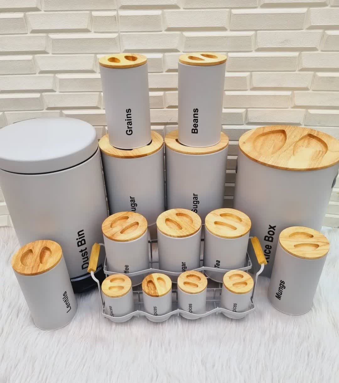 رنگ بدنه این سرویس ثابت است و در اثر استفاده مداوم و شستشو از بین نمی رود. این سرویس شامل سطل برنج، سطل زباله، بانکه قند و شکر، بانکه حبوبات پاسماوری و بانکه ادویه می باشد. این سرویس یک سرویس آشپزخانه کامل جهت نظم دهی به آشپزخانه می باشد. سطل زباله این سرویس آشپزخانه به صورت پدالی است و یک سطل پلاستیکی درب دار داخل آن است که قابلیت شستشو نیز دارد. بر روی بدنه این سرویس آشپزخانه اقلامی که در آن قابلیت نگهداری دارند مثل برنج، حبوبات، شکر، قهوه و چای نوشته