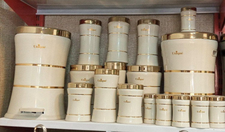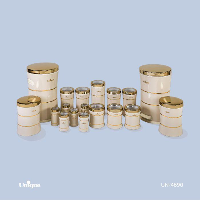 سرویس آشپزخانه 18 پارچه یونیک کرم درب طلا کد 4690 کمرباریک خطی