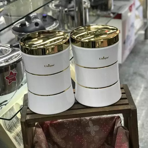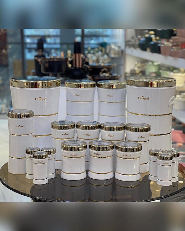 ست آشپزخانه 18 پارچه کمرباریک سفید درب طلایی کد : 4694