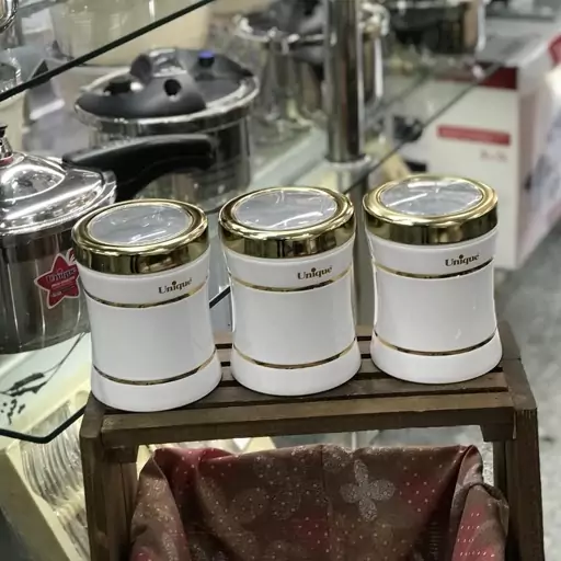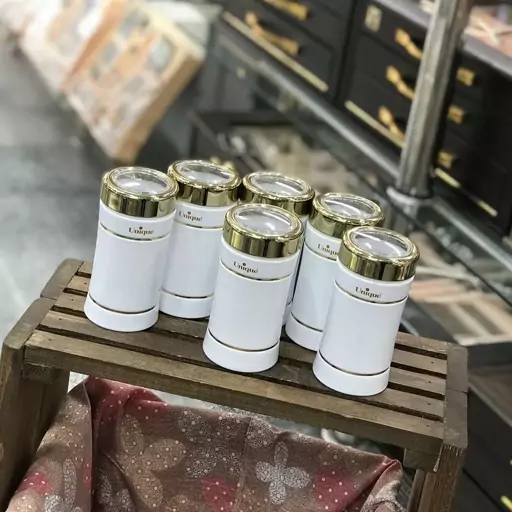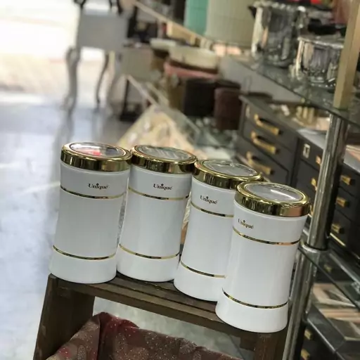 ست آشپزخانه 18 پارچه کمرباریک سفید درب طلایی کد : 4694