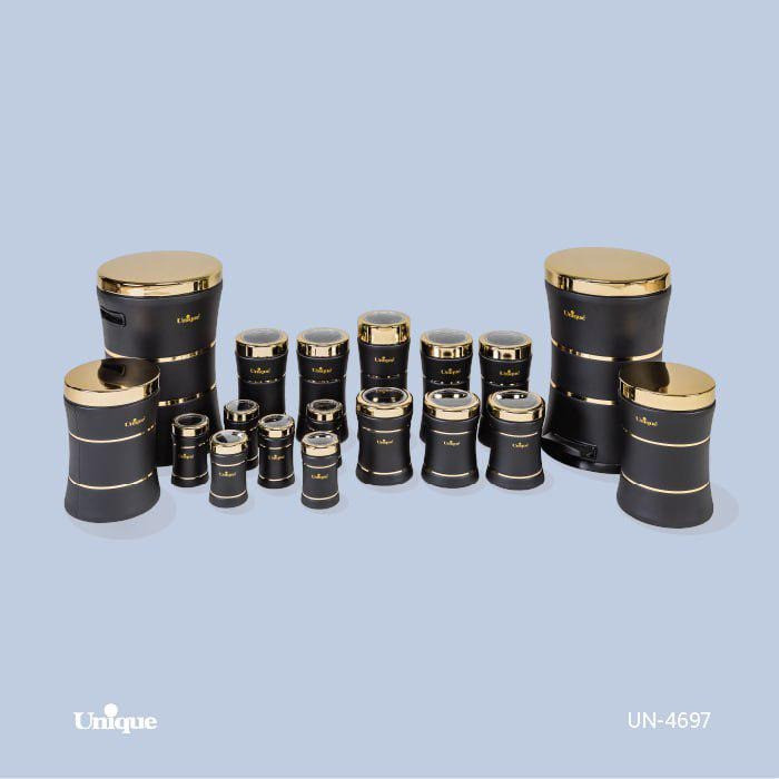 ست آشپزخانه 18 پارچه کمرباریک مشکی مات درب طلایی کد : 4697