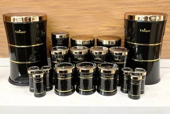ست آشپزخانه 18 پارچه کمرباریک مشکی براق درب طلایی کد : 4698