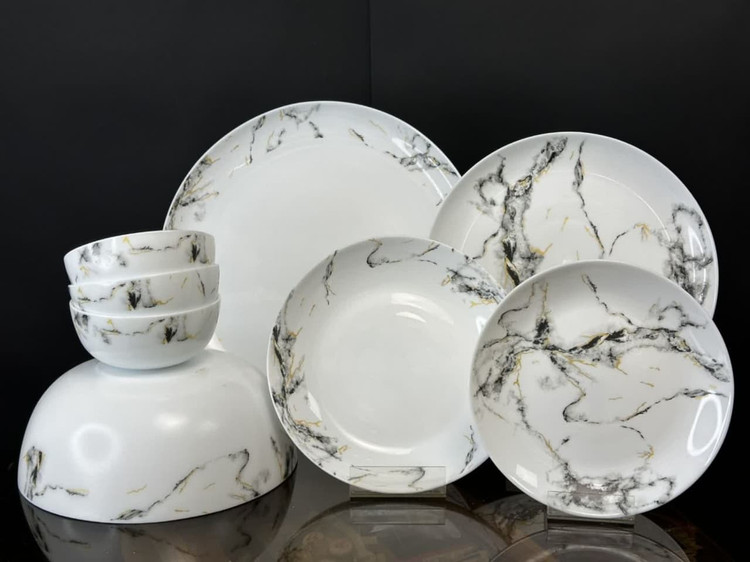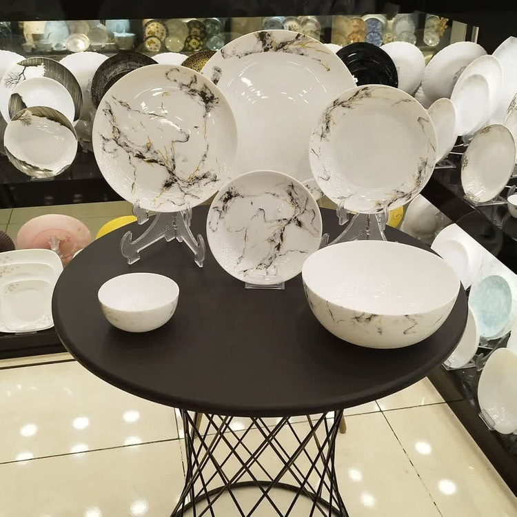طرح اونیکس مشکی قالب گرد برند مقصود 26 پارچه این ظروف آرکوپال از کیفیت ساخت بالایی برخورداره و طراحی فوقع العاده زیبایی دارد که در نگاه اول متوجه آن میشوید.