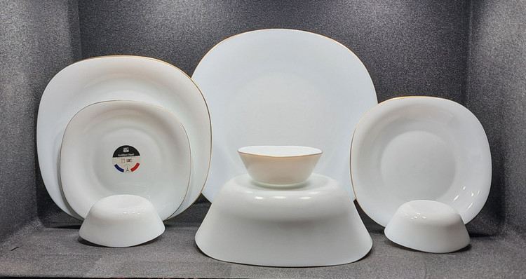 طرح لب طلا قالب مربع برند مقصود 26 پارچه این ظروف آرکوپال از کیفیت ساخت بالایی برخورداره و طراحی فوقع العاده زیبایی دارد که در نگاه اول متوجه آن میشوید.